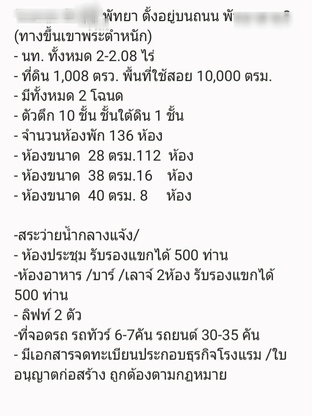 ขายกิจการโรงแรม ที่ พัทยา บนทำเลทอง