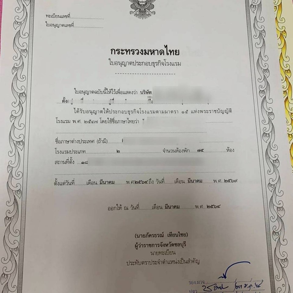 พร้อมใบอนุญาตโรงแรมถูกต้องตามกฎหมาย
